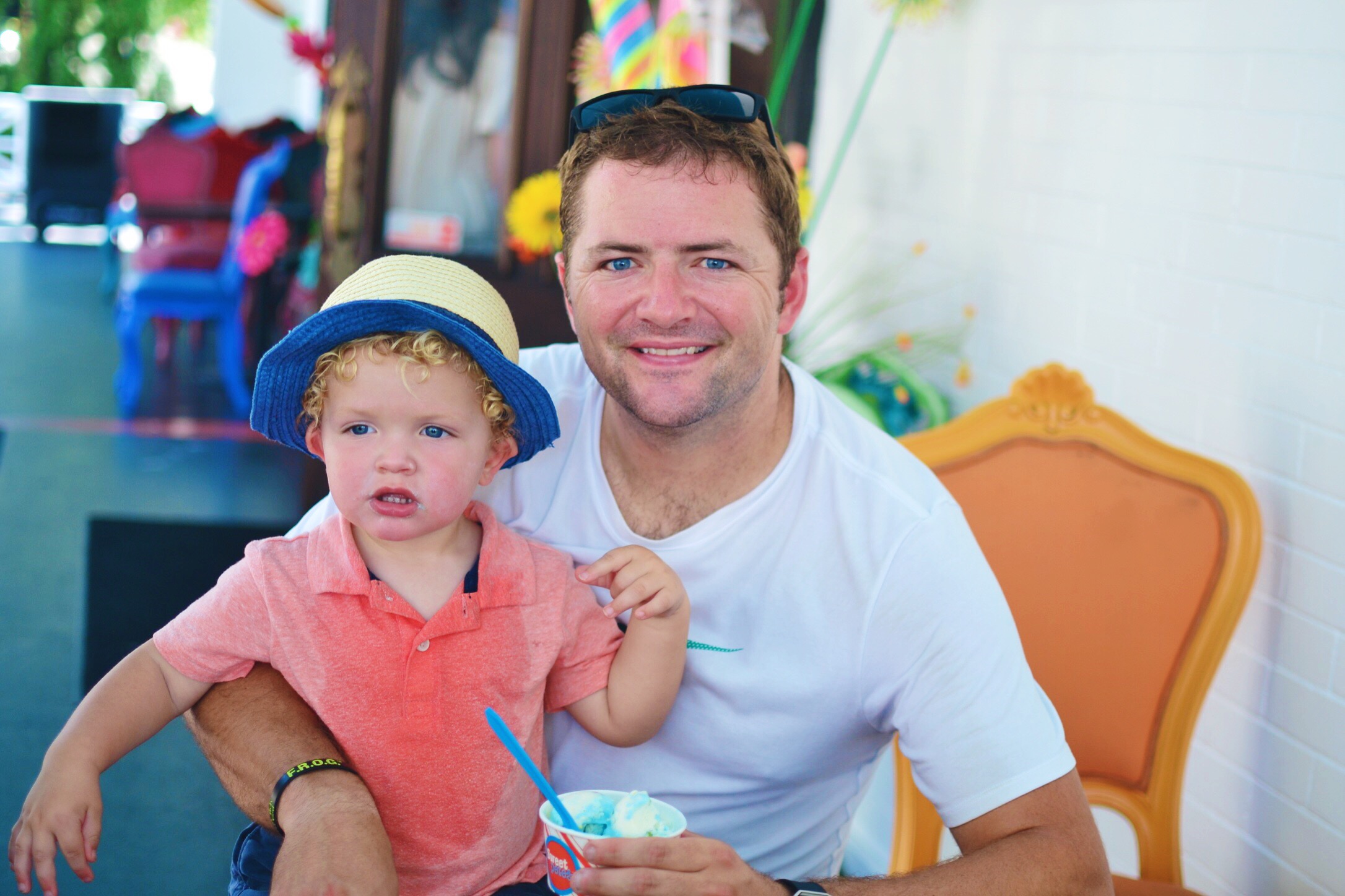 I grabbed us a giant tropical smoothie to share while Pippa begged Justin to take her and Teddy to "go on the ride" - literally an escalator. They seemed to think it was fun, though! The smoothie was so refreshing and a welcome escape from the humidity.